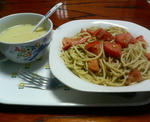 今夜はトマトとバジルのパスタ。