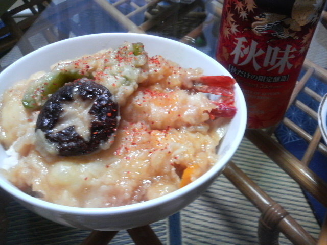 帰ったら惣菜の天ぷらがあったんですが、RiVさんはあんまり惣菜の天ぷらって好きじゃないので、天丼にしてみました。