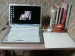退院してきたVistanをね、今までそれは酷い環境で扱ってたから、ちゃんと専用テーブルを買ったよ。 デスクトップは退院祝いに楔w …てか今までどんな状態で描いてたんだ、とかは聞かないで下さい(^q^)酷すぎて引かれるw 手元にいつも使う資料的なものを配置してみた。 こうすれば、探すために部屋を荒らさなくていいんだ!←今さら 何か落ち着いて描けそうな気がする。 そのうち本が山積みになったりして荒れるんでしょうけど! 今だけは…!!! ちなみに足元には神々のKvIどーじんしが詰め込まれた段ボールが置いてありますwwwww 開封厳禁!!! |